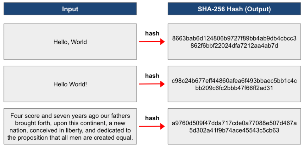 W blockchainie Bitcoina każda transakcja jest przekształcana w hasz i dołączana do bloku. Blok ten zawiera również hasz poprzedniego bloku, co tworzy łańcuch połączonych bloków (czyli sieć blockchain). Połączenie to sprawia, że zmiana nawet jednego elementu w którymkolwiek bloku powoduje zmianę całego łańcucha, co sprawia, że wszelkie manipulacje są praktycznie niemożliwe do przeprowadzenia bez wykrycia.