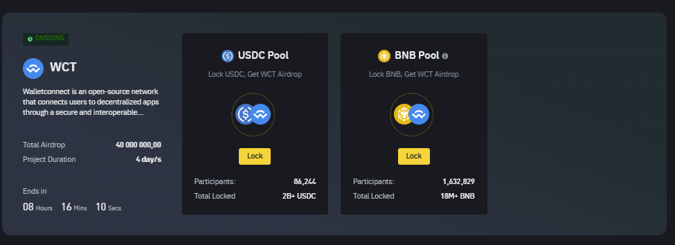 Dla uczestników Binance Launchpool przewidziano 4% całkowitej podaży, czyli 40 milionów WCT. Tokeny te rozdzielą się pomiędzy pule BNB, FDUSD i USDC.