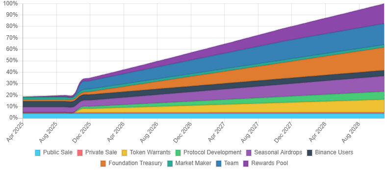 Reszta tokenów będzie uwalniana zgodnie z harmonogramem. To ogranicza ryzyko nagłej podaży i chroni przed gwałtownymi spadkami ceny.